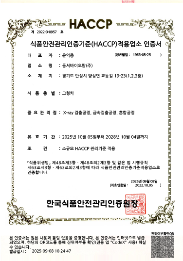 °íÇüÂ÷-HACCPÀÎÁõ¼
